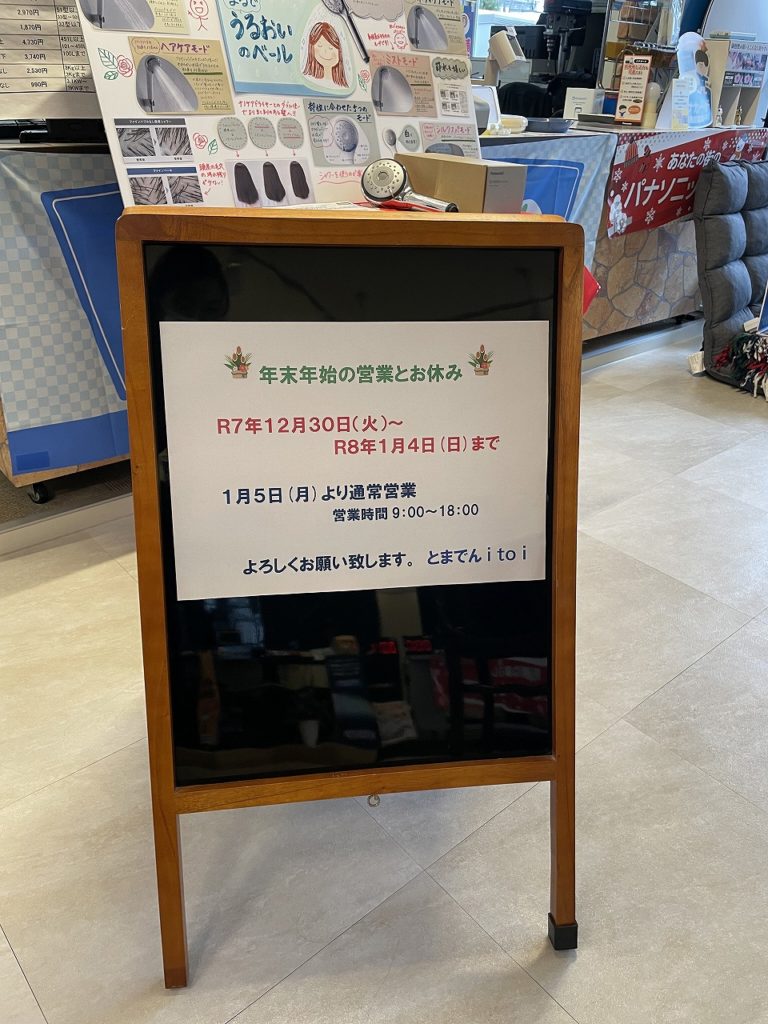 12月29日は店舗にスタッフがいない状態ですので、何かございましたらお電話をいただければ対応できますのでよろしくお願いいたします。