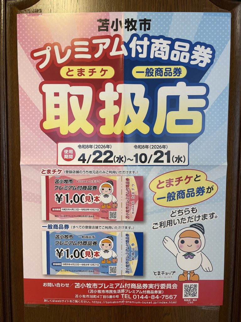 苫小牧市プレミアム付商品券使えます!